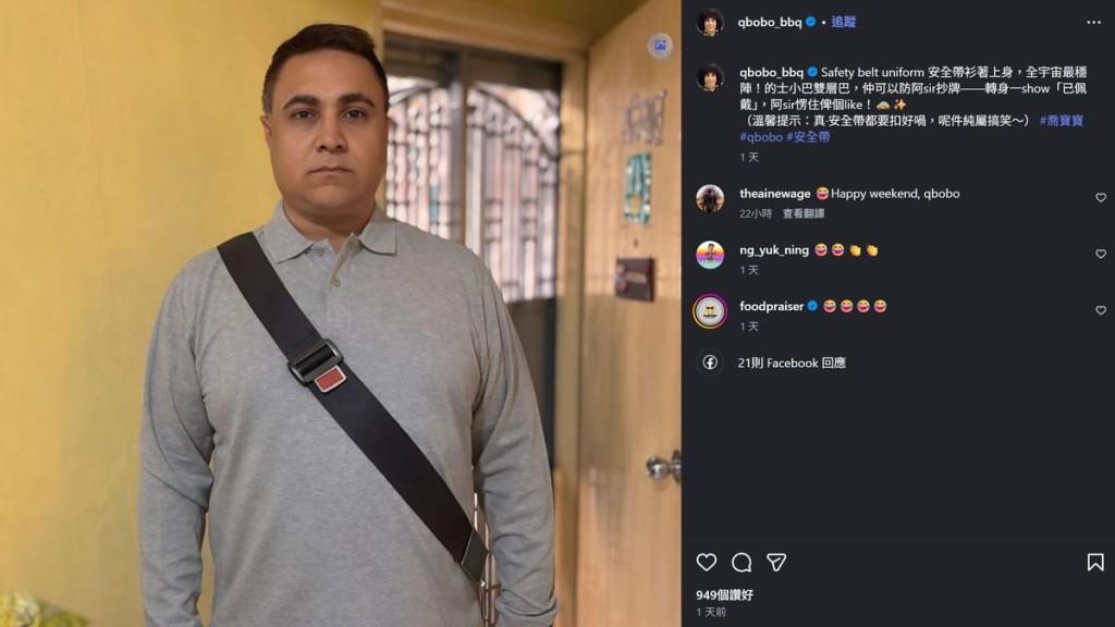 Former TVB comedian Gill Mohindepaul Singh, popularly known as Qbobo, has once again captured online attention with his signature humour. The 55-year-old posted a photo of himself wearing a grey polo shirt featuring a black strap cleverly positioned across his torso to mimic a seatbelt. In the caption, he playfully pitched the look as the ultimate “Safety belt uniform” for passengers in taxis, minibuses, and double-decker buses—joking that the sight might stun traffic police into giving a “like” instead of issuing a fine. The timely satire tapped into recent public debates and enforcement actions surrounding seatbelt compliance in Hong Kong.
